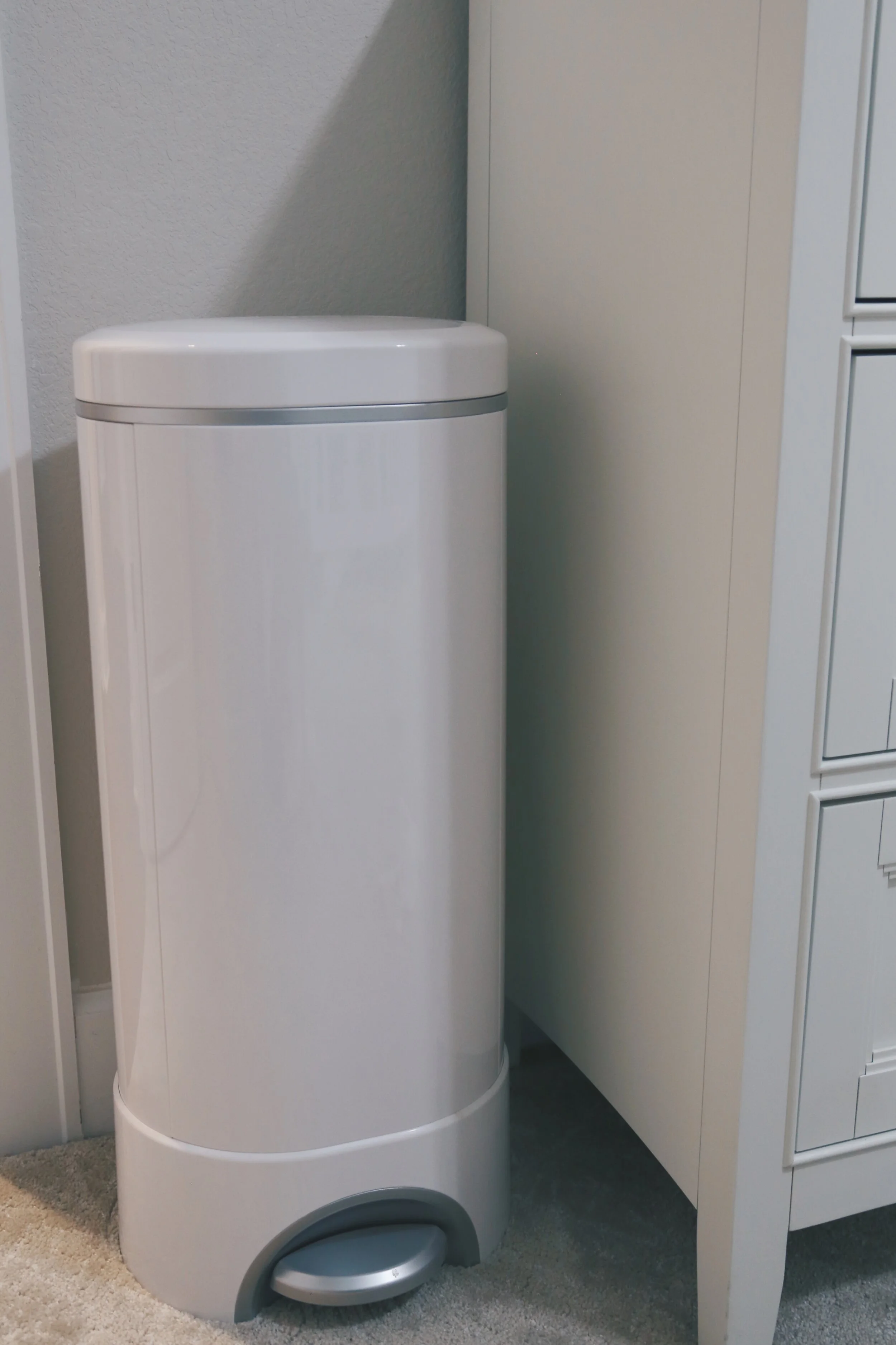 We decided on this diaper pail for our registry and we never looked back. We received it at one of our baby shower’s and it’s been great. I love the clean white look. We have never had an issue with smell. The bags are easy to remove and put on. Underneath the lid you can add an arm&hammer scent refresher. Works great! We use this everyday! Also sold on Amazon, Target, and Buy Buy Baby.